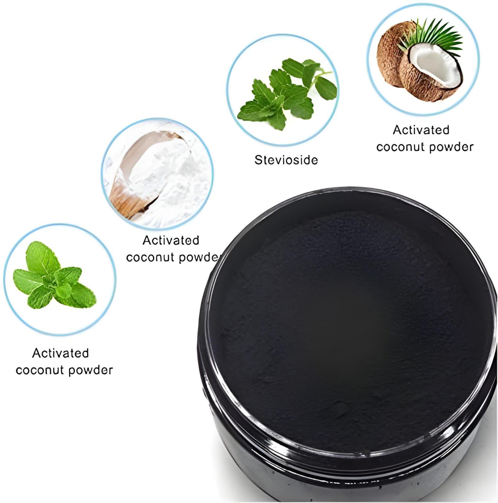 مصنوع من الفحم النشط عالي الجودة، هذا المسحوق اللطيف والفعال يُنقّي فمك، ويُلمّع أسنانك، ويُزيل البقع السطحية من القهوة والشاي وغيرها. آمن، طبيعي، وسهل الاستخدام لثقة يومية!