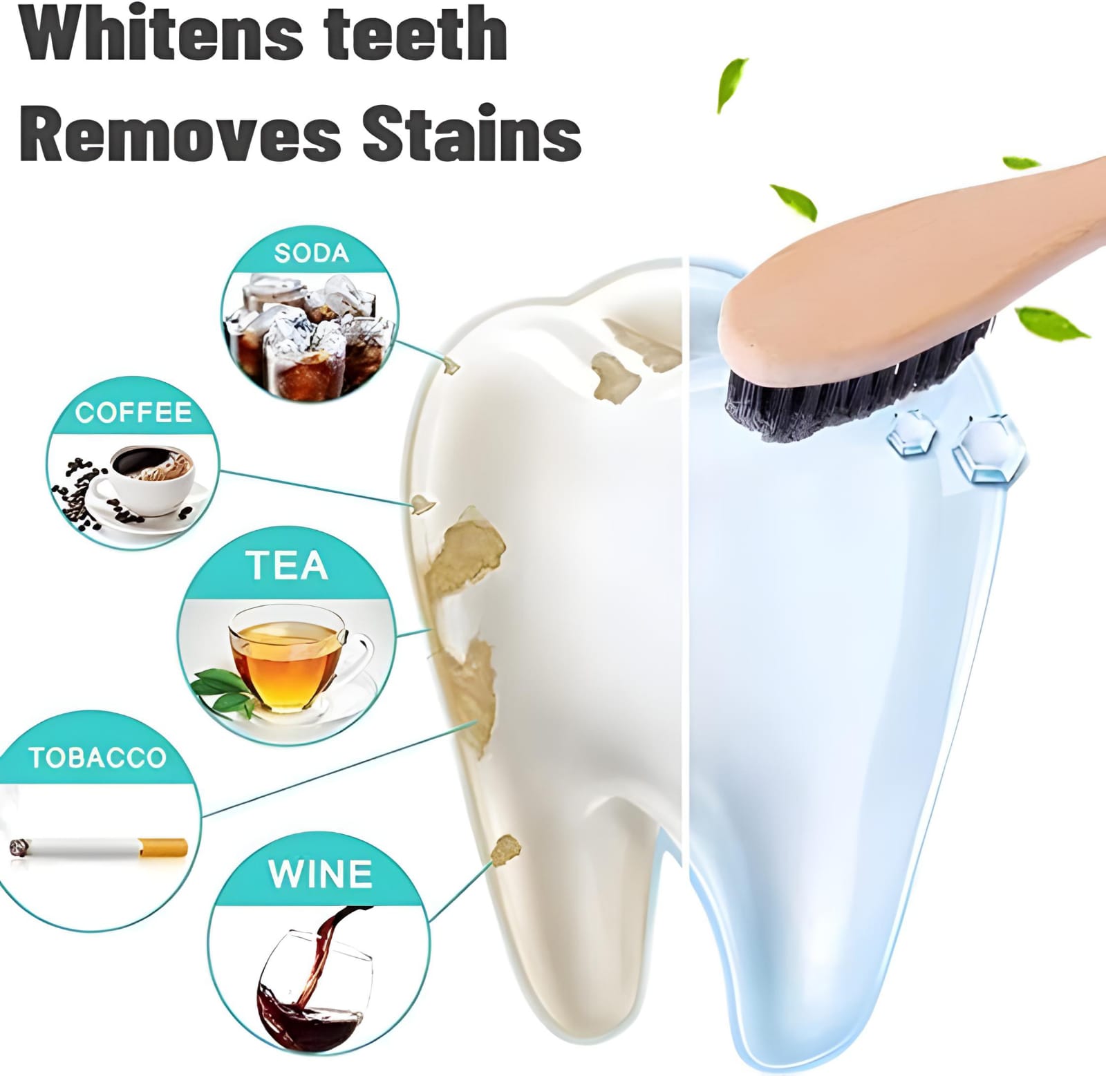 يرتبط الفحم النشط بالبقع والسموم، مما يساعد على تبييض الأسنان دون حساسية أو تبييض.