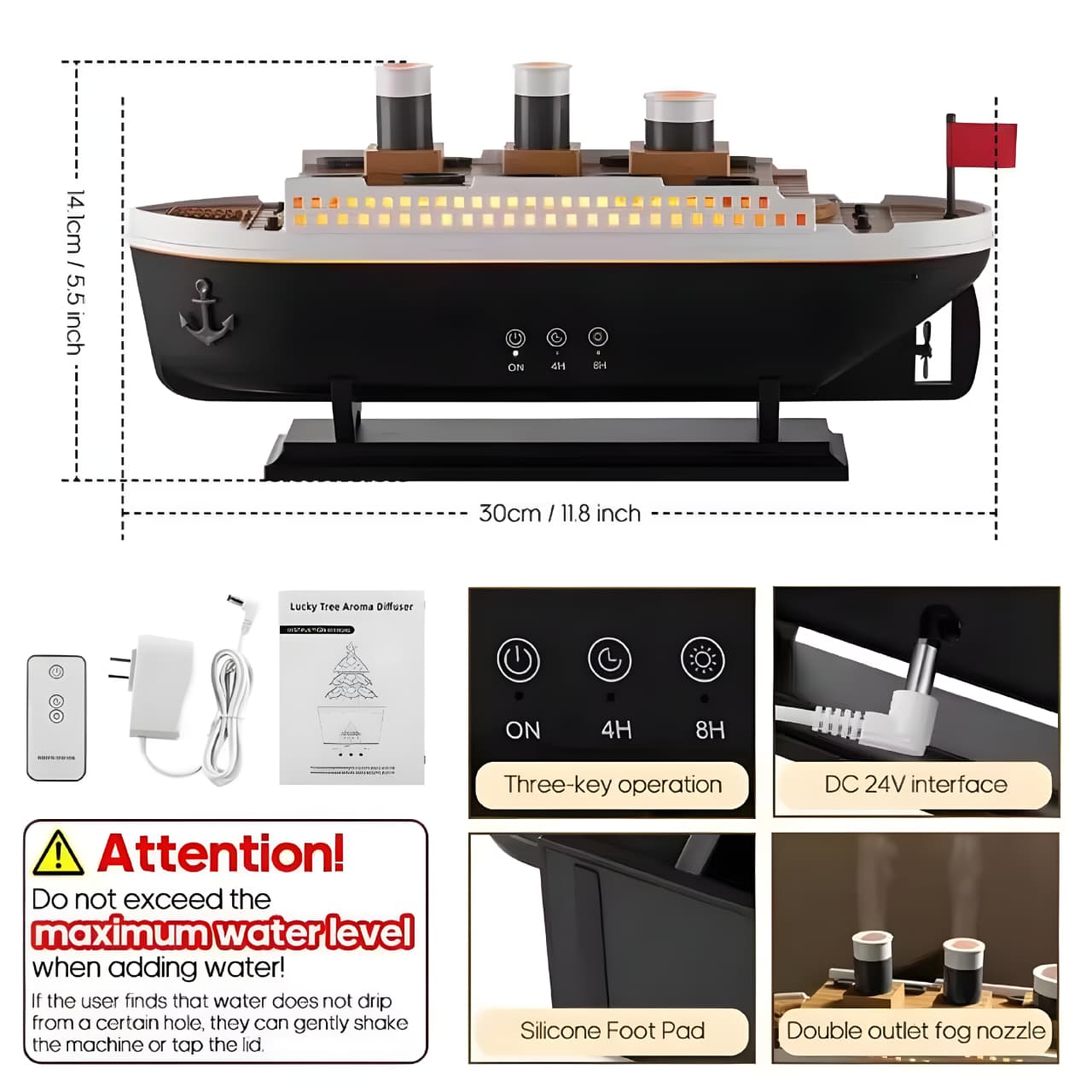 أضف لمسةً من السحر والراحة إلى منزلك مع هذا المرطب ذو التصميم الفريد. على شكل سفينة تايتانيك، يُطلق رذاذًا مُهدئًا يُحسّن جودة الهواء، كما أنه يُضفي لمسةً جماليةً على ديكور منزلك. مثالي لغرف النوم، وغرف المعيشة، وأماكن العمل.